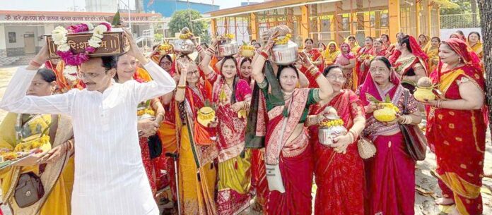 बुधवार को छोला मन्दिर पर 108 मंगल कलश यात्रा के साथ श्रीमद भागवत कथा ज्ञान यज्ञ का शुभारम्भ हो गया। पीताम्बर धारण किये महिलाओं व युवतियों ने अपने-अपने सिर पर कलश रखकर समूचे मन्दिर प्रांगण का भ्रमण कर व जल भरकर मन्दिर परिसर में स्थापित पाण्डाल में वैदिक मंत्रोच्चारण के बीच विधिवत कलशों की स्थापना करवायी। तदुपरान्त गणेश पूजन के साथ कथा प्रारम्भ हुई। भागवत कथा आयोजक संजीव वर्मा (डॉक्टर) ने जानकारी देते हुए बताया कि उक्त कथा 17 मार्च को सम्पन्न होगी। कथा का रसपान सरस कथावाचक उज्जवल शांडिल्य श्री वृन्दावन धाम के मुखारबिन्दु से प्रतिदिन अपरान्ह्र 2 बजे से सांय 6 बजे तक कराया जायेगा। इस दौरान यज्ञाचार्य राहुल दीक्षित, मन्दिर प्रबन्धक राजू चौहान, राजेश चौहान, संजीव श्रीवास्तव, रतन सिंह, कमलकान्त, आदित्य कुमार, मनोज वर्मा, राजेश कुमार सहित समस्त व्यवस्थापकों व सहयोगियों की उपस्थिति उल्लेखनीय रही।