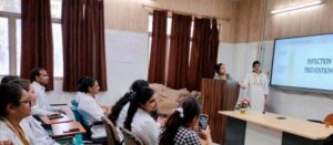 प्रशिक्षण सत्र के दौरान डॉ. अनुराधा ने हाथों की स्वच्छता (हैंड हाइजीन), व्यक्तिगत सुरक्षा उपकरण (पीपीई) के सही उपयोग तथा स्टेरिलाइजेशन और डिसइन्फेक्शन से संबंधित महत्वपूर्ण प्रोटोकॉल की विस्तृत जानकारी दी। वहीं डॉ. आकांक्षा शर्मा ने बायोमेडिकल वेस्ट मैनेजमेंट पर प्रकाश डालते हुए स्वास्थ्य संस्थानों में कचरे के सुरक्षित प्रबंधन की आवश्यकता और उसके प्रभावों के बारे में बताया।