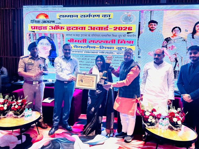 सदर विधानसभा क्षेत्र अंतर्गत होटल क्लार्क इन में प्रतिष्ठित समाचार पत्र दैनिक जागरण द्वारा आयोजित “प्राइड ऑफ इटावा अवार्ड-2026” कार्यक्रम का भव्य आयोजन किया गया। कार्यक्रम में जनपद के विभिन्न क्षेत्रों में उत्कृष्ट कार्य करने वाले गणमान्य व्यक्तियों को सम्मानित किया गया।